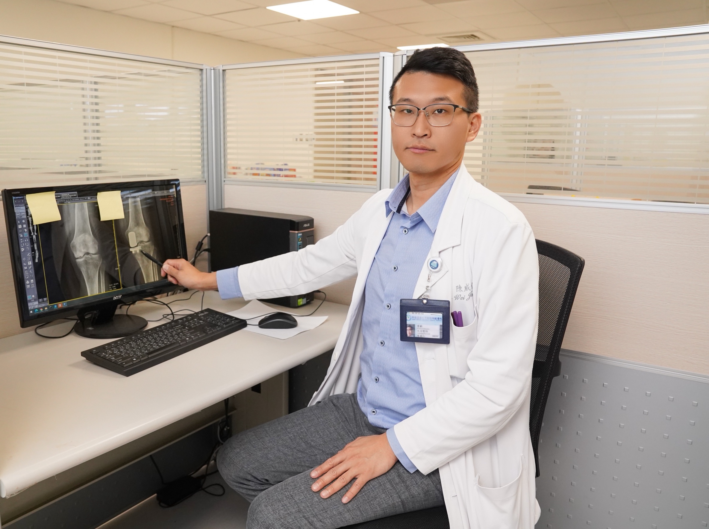 60 歲女教師肩膀痛達三個月,穿衣、提包、寫黑板都變得困難,夜間更痛到無法睡覺,求診中國醫藥大學新竹附設醫院骨科醫師葉詩翰,經理學檢查,旋轉肌夾擠測試陽性,阻力測試顯示明顯無力,經核磁共振確診「巨大旋轉肌袖撕裂」,老師肌腱薄、撕裂後明顯退縮,並已有部分脂肪浸潤,經醫病溝通,以微創關節鏡旋轉肌袖修補,結合「自體肱二頭肌轉位術」增強修復,改善患者長期肩痛、抬舉無力等困擾,並大幅降低再撕裂風險。手術歷時約2小時,住院3天,術後老師已順利恢復教學,抬手寫黑板不再疼痛無力,並向身邊親友推薦就醫。