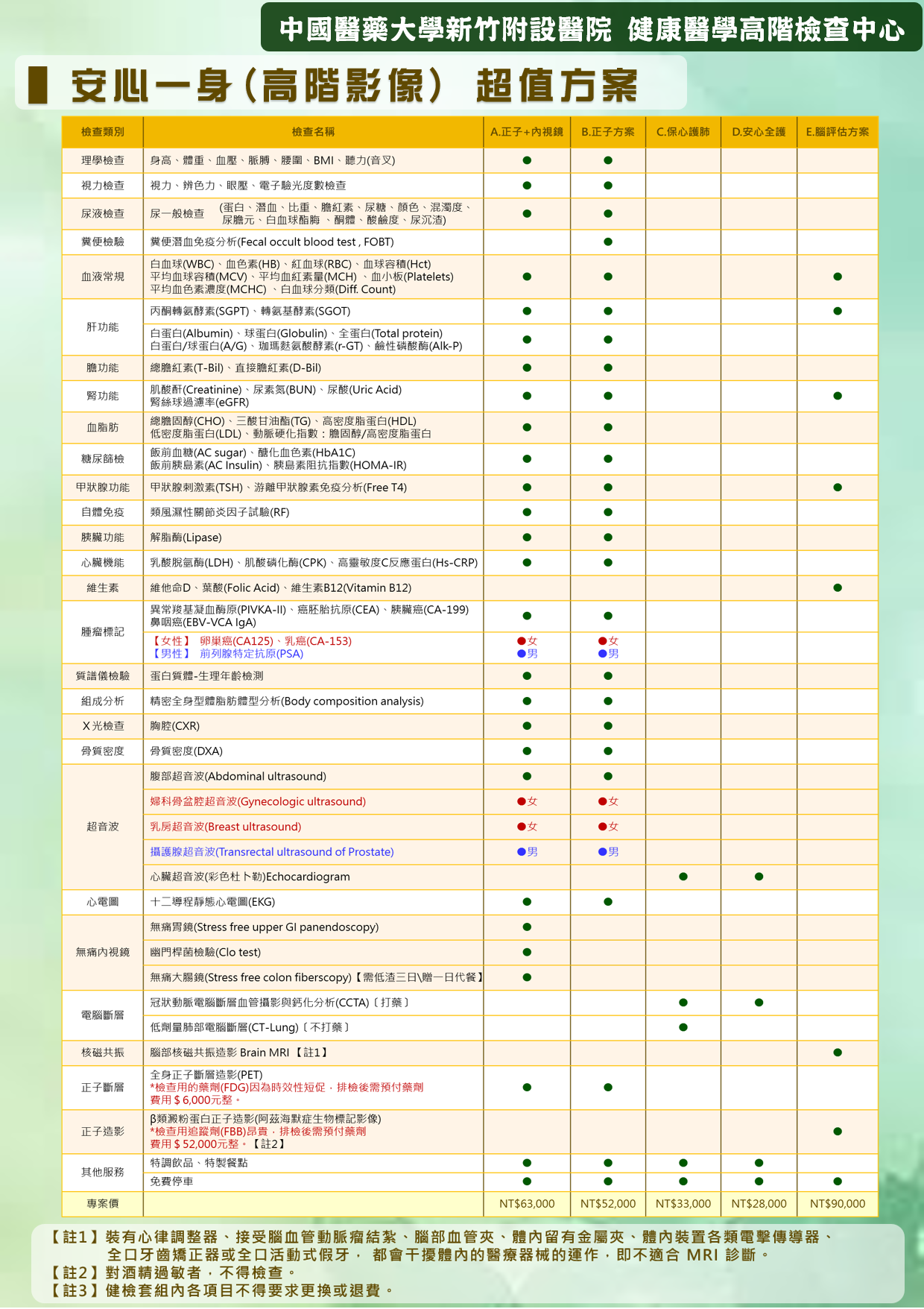 安心一身(高階影像) 超值方案