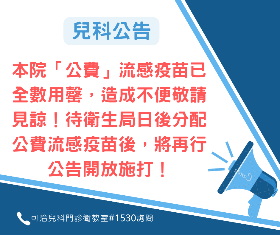2026/4/10兒科公告:公費流感疫苗已全數用罄