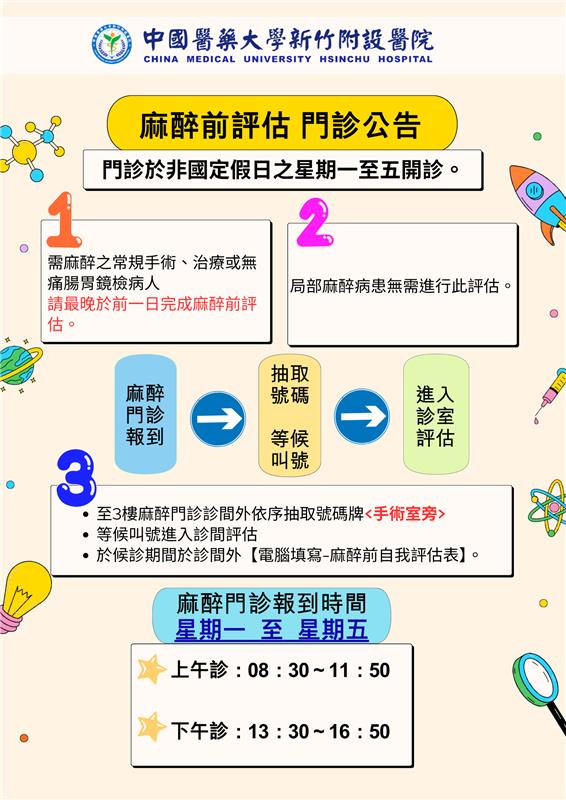 麻醉前評估 門診公告