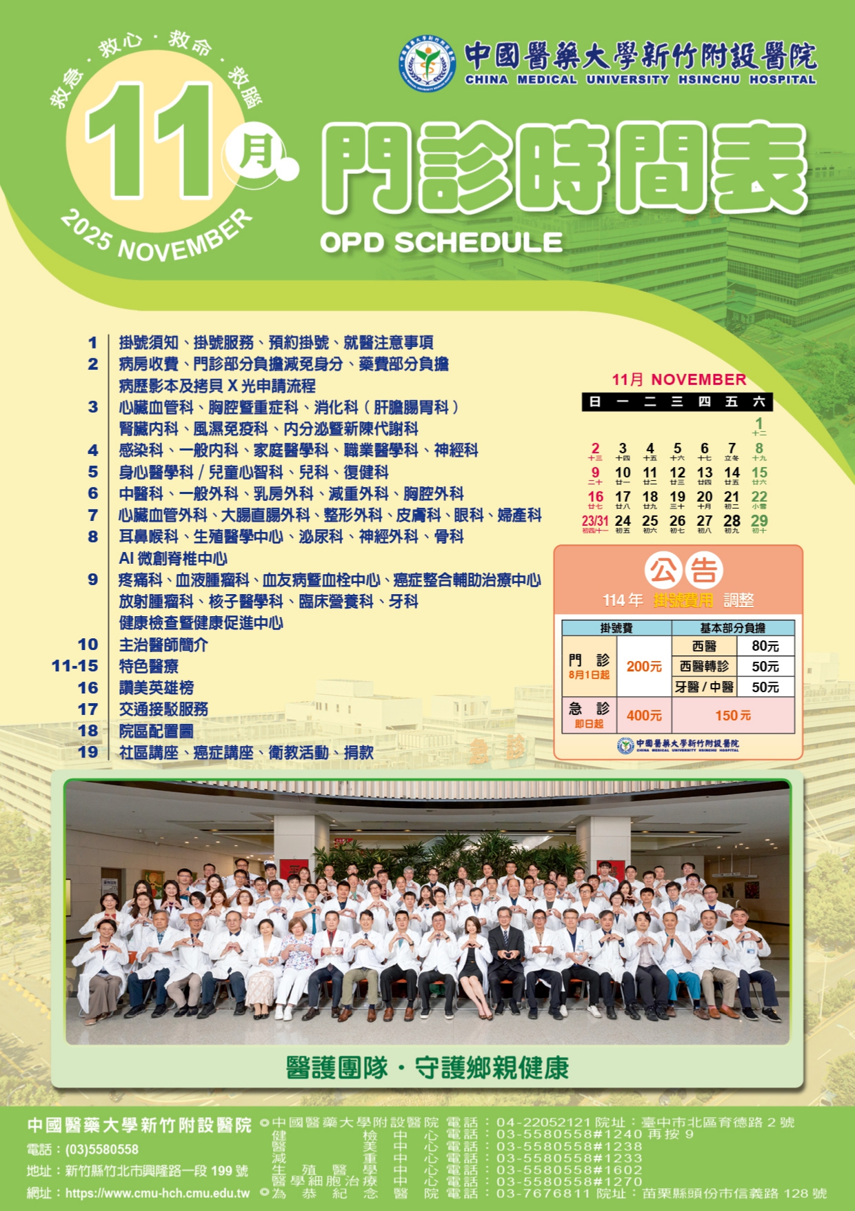 中國醫藥大學新竹附設醫院114年11月門診表
