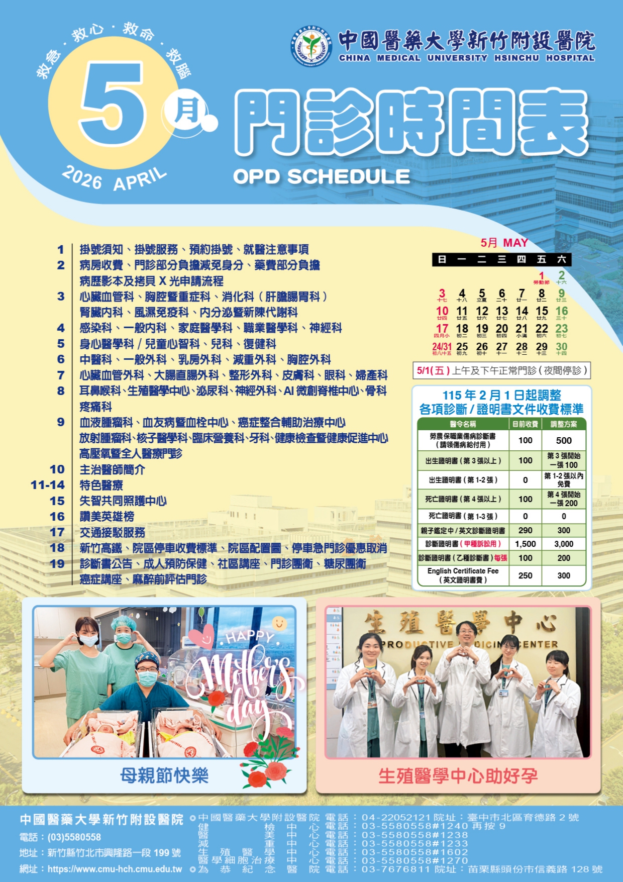 中國醫藥大學新竹附設醫院115年05月門診表