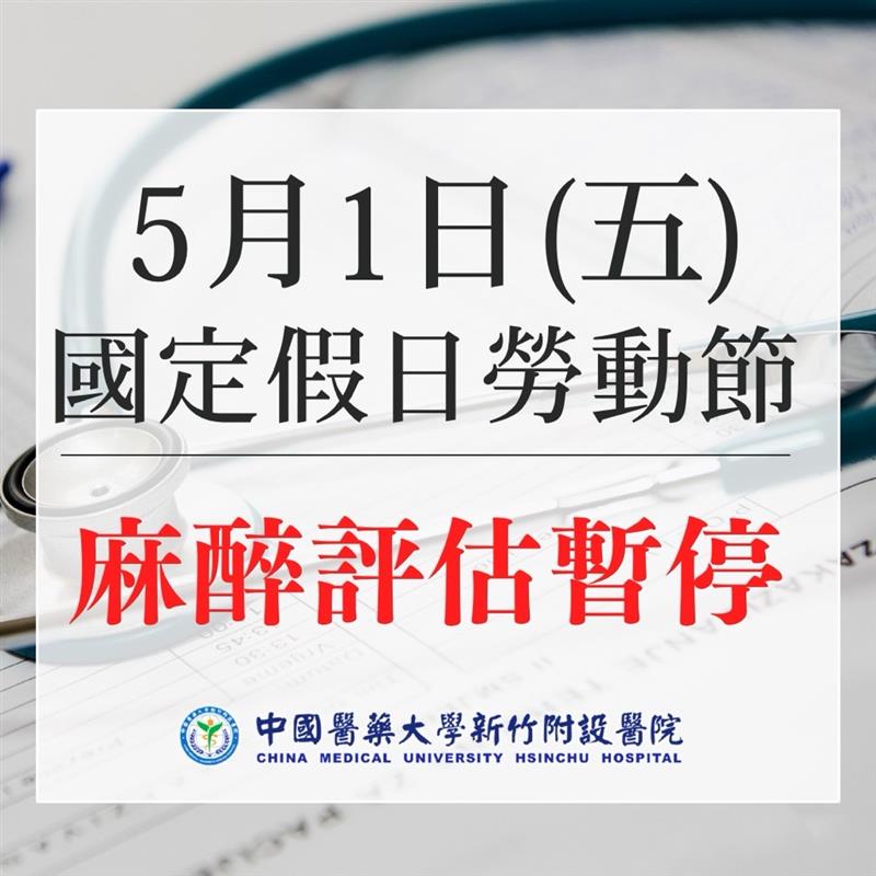 勞動節麻醉評估暫停公告